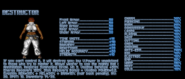 Псионические параметры у носителя (не фрика) с вуду-капом: 78/40, это самый большой в игре бонус к вуду-силе.
